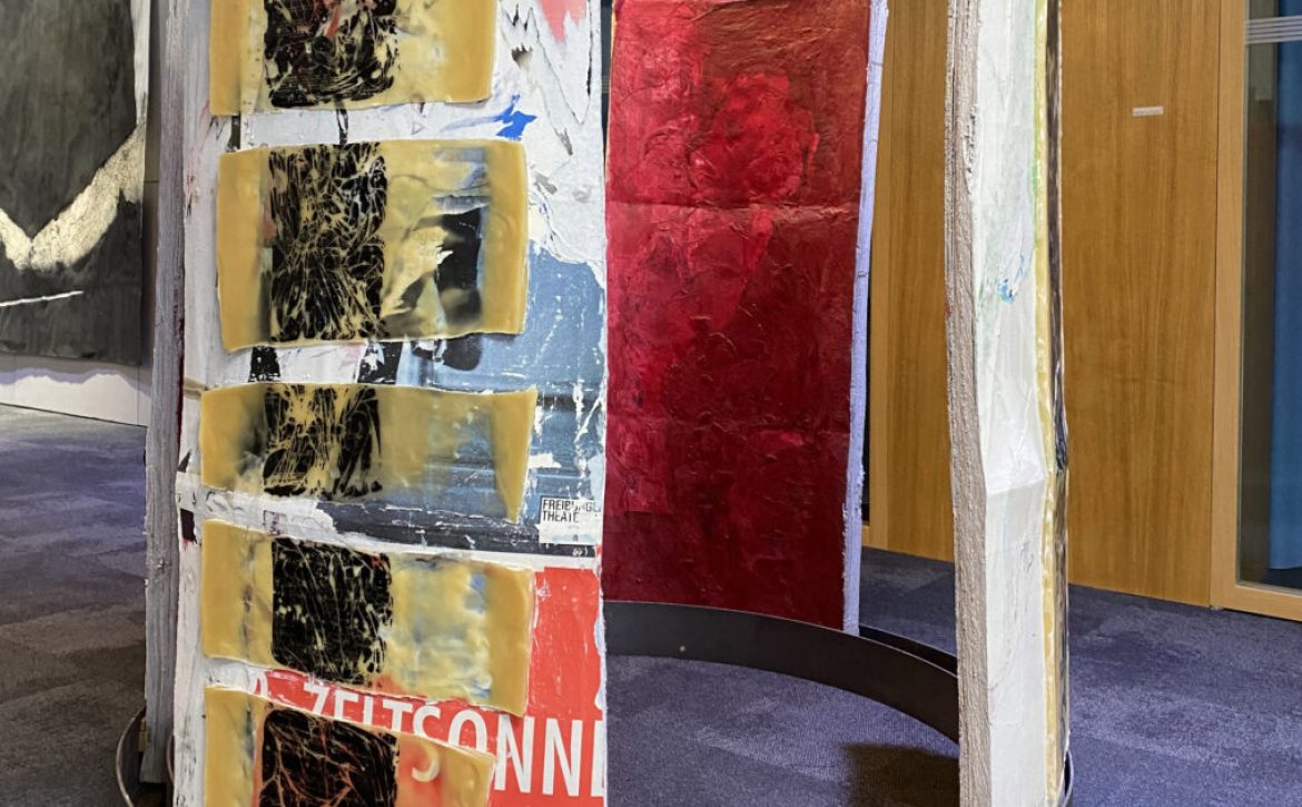 As we navigate through life, we undergo various transformations and transitions, which further shape our perception of the world around us. Our memories, often fragmented and incomplete, play a significant role in how we interpret and understand our surroundings. German artist Petra Goehringer Machleid focuses on the interplay of wax and concrete and how the two different materials merge together over time. In her work “Litfass,” the peeling of all the different layers off the pillar represent all the stories held together, making it a unique representation of how experiences transform an individual.